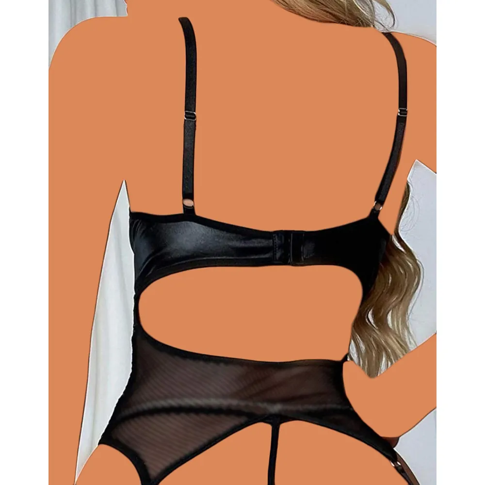 🖤 بادی چرم و تور جلو حلقه Desire