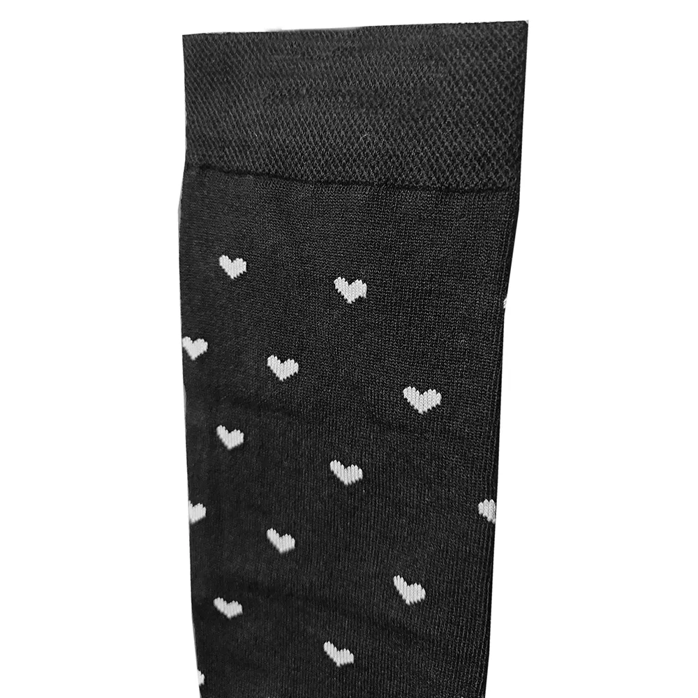 جوراب زنانه نخی مشکی با طرح قلب و خط سفید کد 1052