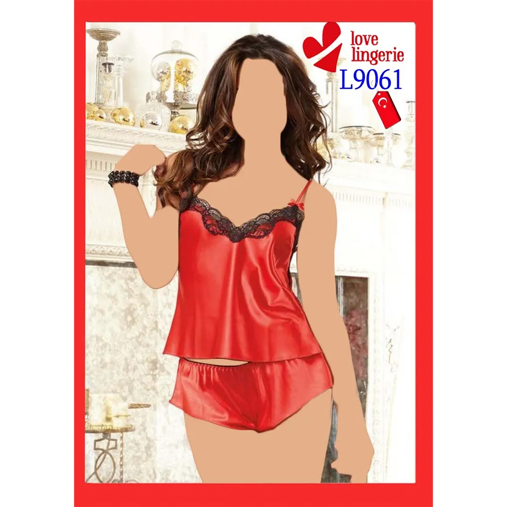 ست تاپ شورت ساتن لاو لاینجری کد L9061