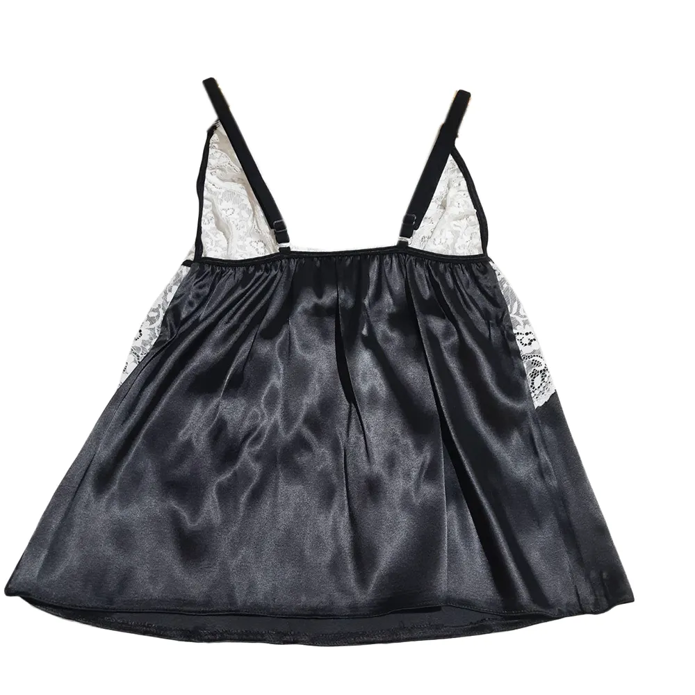 تاپ ساتن با بخش سینه‌ای از دانتل سفید که با پارچه مشکی ترکیب شده است