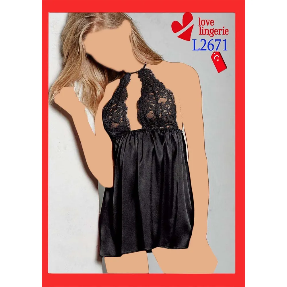 لباس خواب ساتن و دانتل لاو لاینجری کد L2671