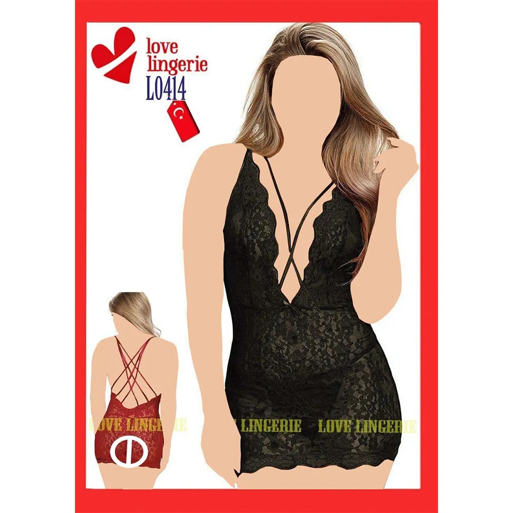 👗 لباس خواب گیپور هارنسی پشت ضربدری لاو لاینجری کد L0414 👗