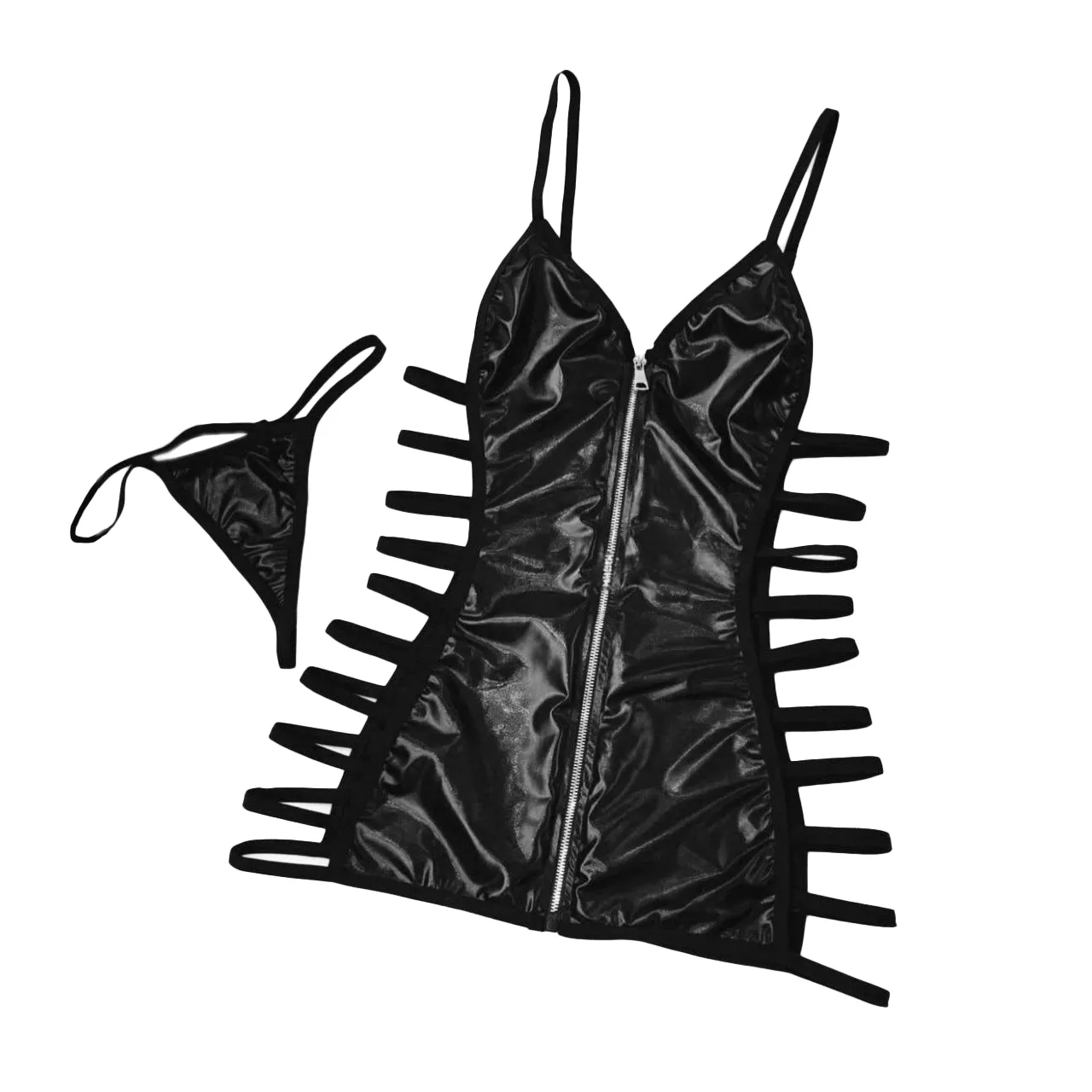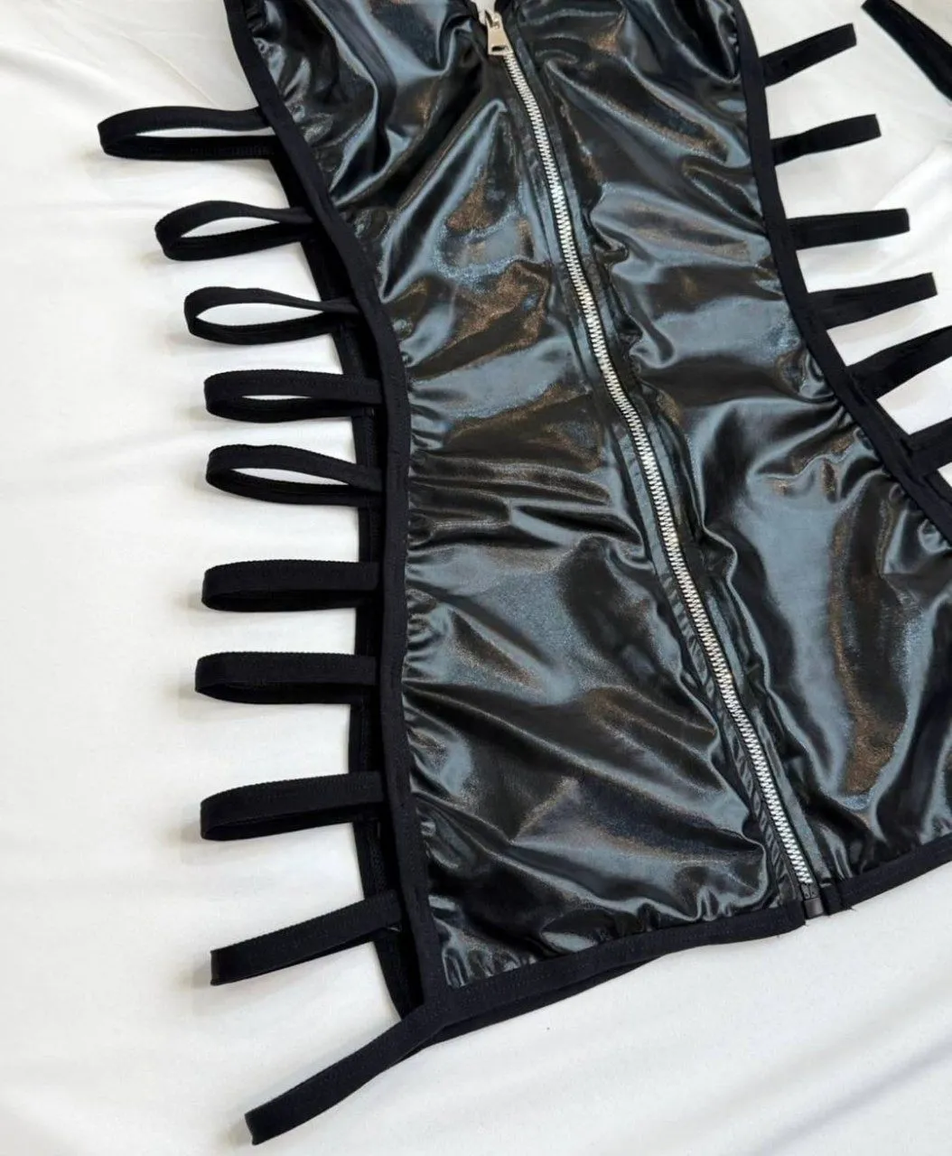 • دو طرف لباس کاملاً باز بوده و با بندهای نردبانی باریک پوشش داده شده است.