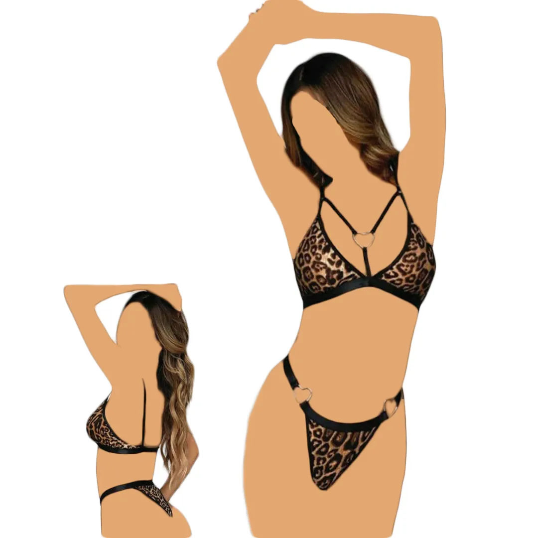 ست شورت و سوتین پلنگی با حلقه‌های قلبی کد 023